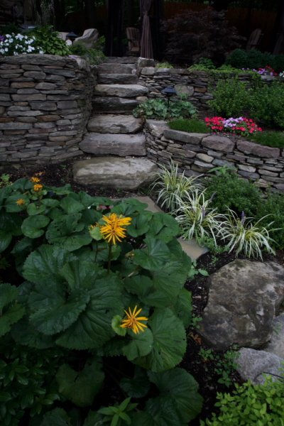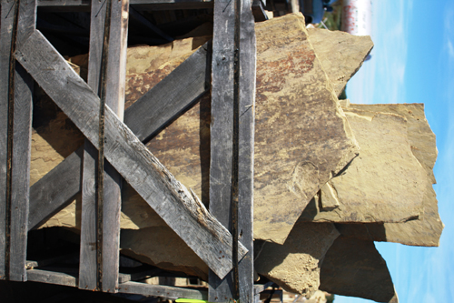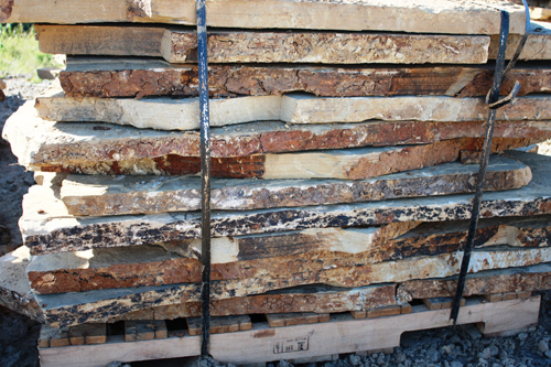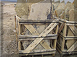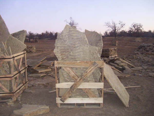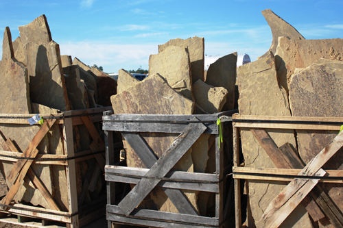 boulders, slabs and palletized landscaping materials.