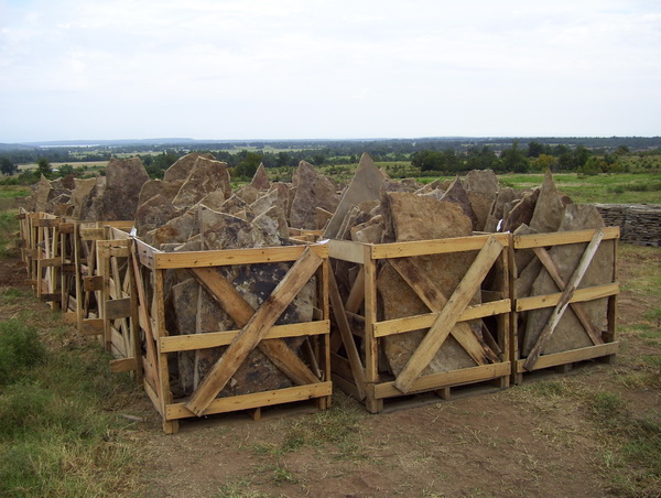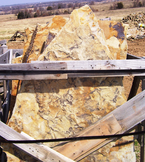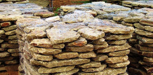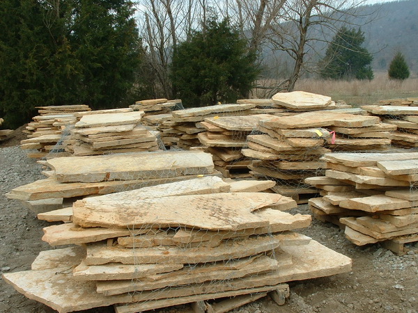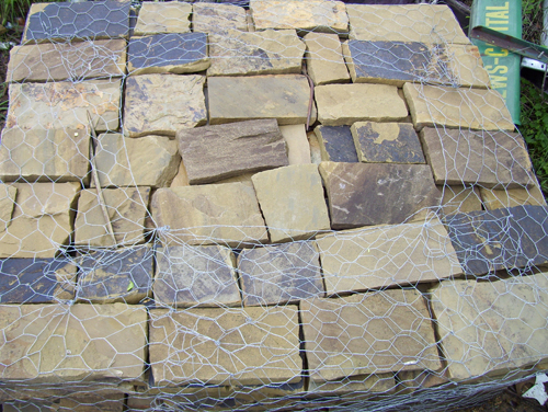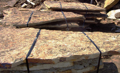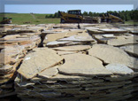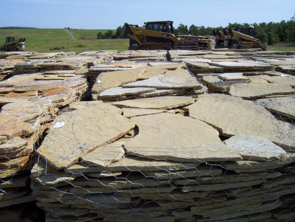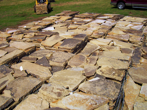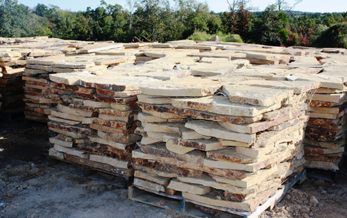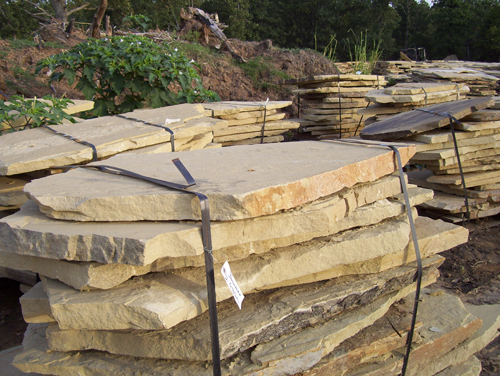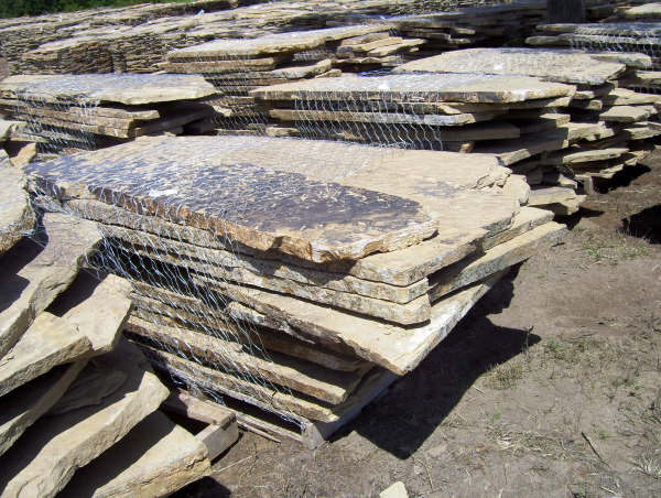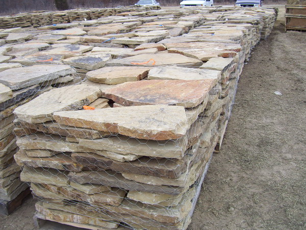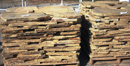 Our Flagstone is produced as it has been for thousands of years. Large Sandstone boulders are hand split and chiseled by stone craftsmen. Flagstone is perfect for walls, patios, walkways, and many other applications.